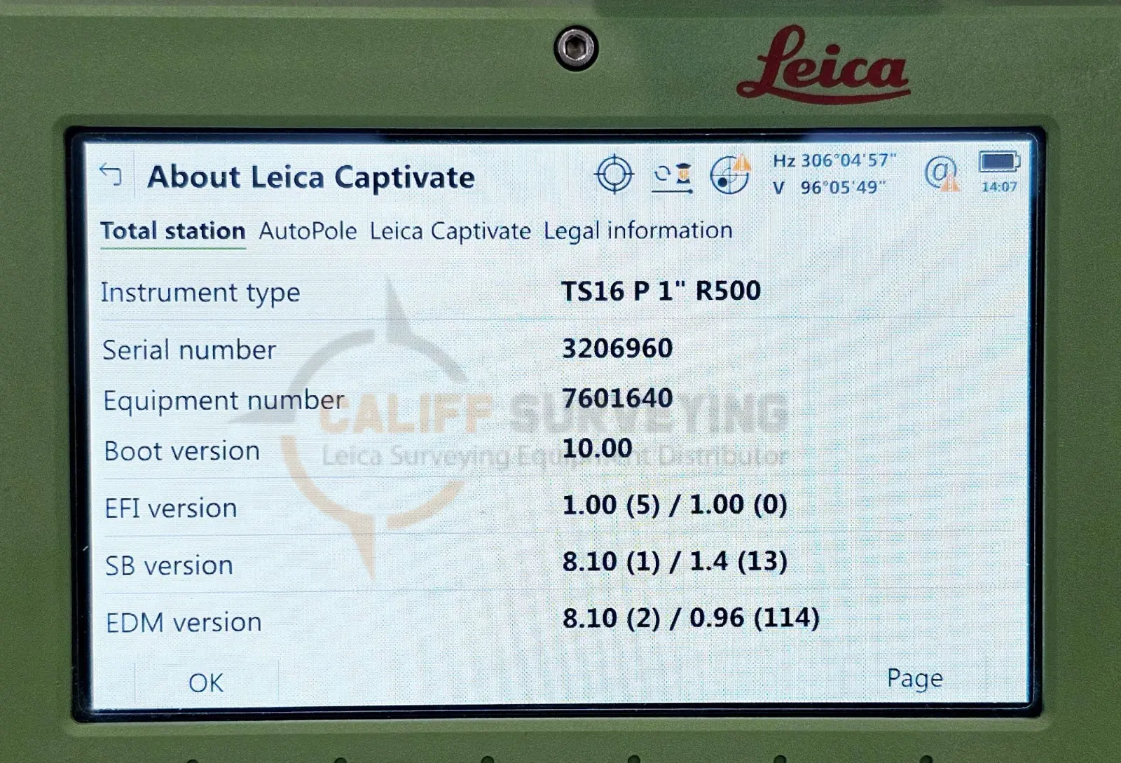 This model is a Power Search (P) model that features an advanced prism search mode for use with a robotic total station. Other available models are Automated (A) with automatic target recognition, and Imaging (I) with a 5MP overview camera.